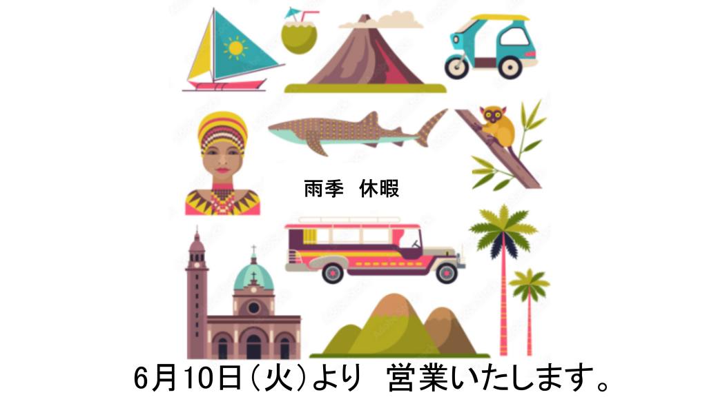 雨季休暇 6月 5(木)~ 9日(月)